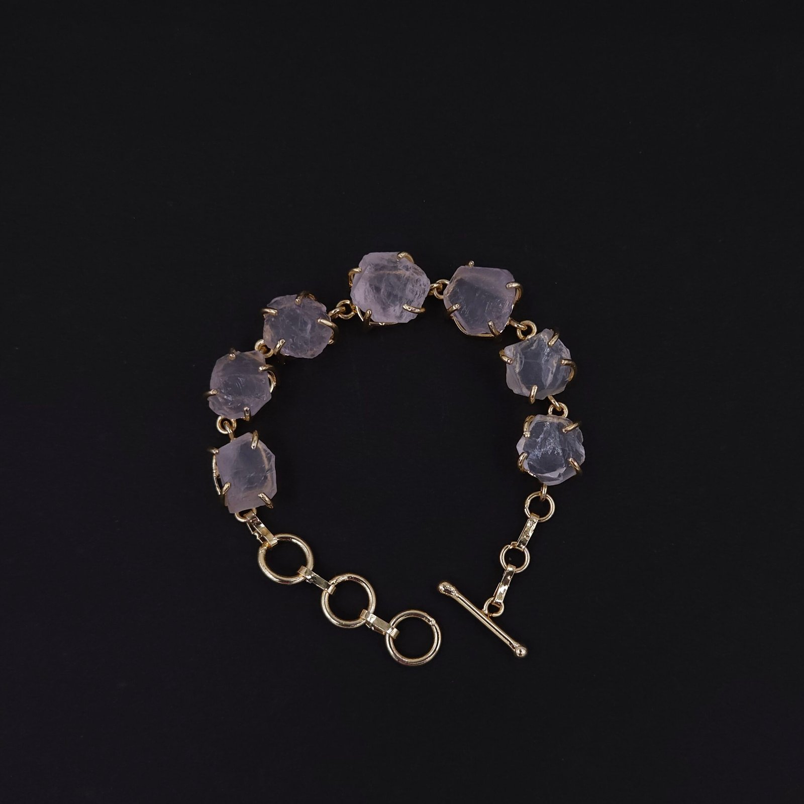Elevate your style with this elegant brass bracelet, handcrafted with natural rose quartz stones in their raw, organic shape. Each gemstone is set in a delicate crown fitting brass frame, preserving its natural beauty while adding a touch of sophistication.