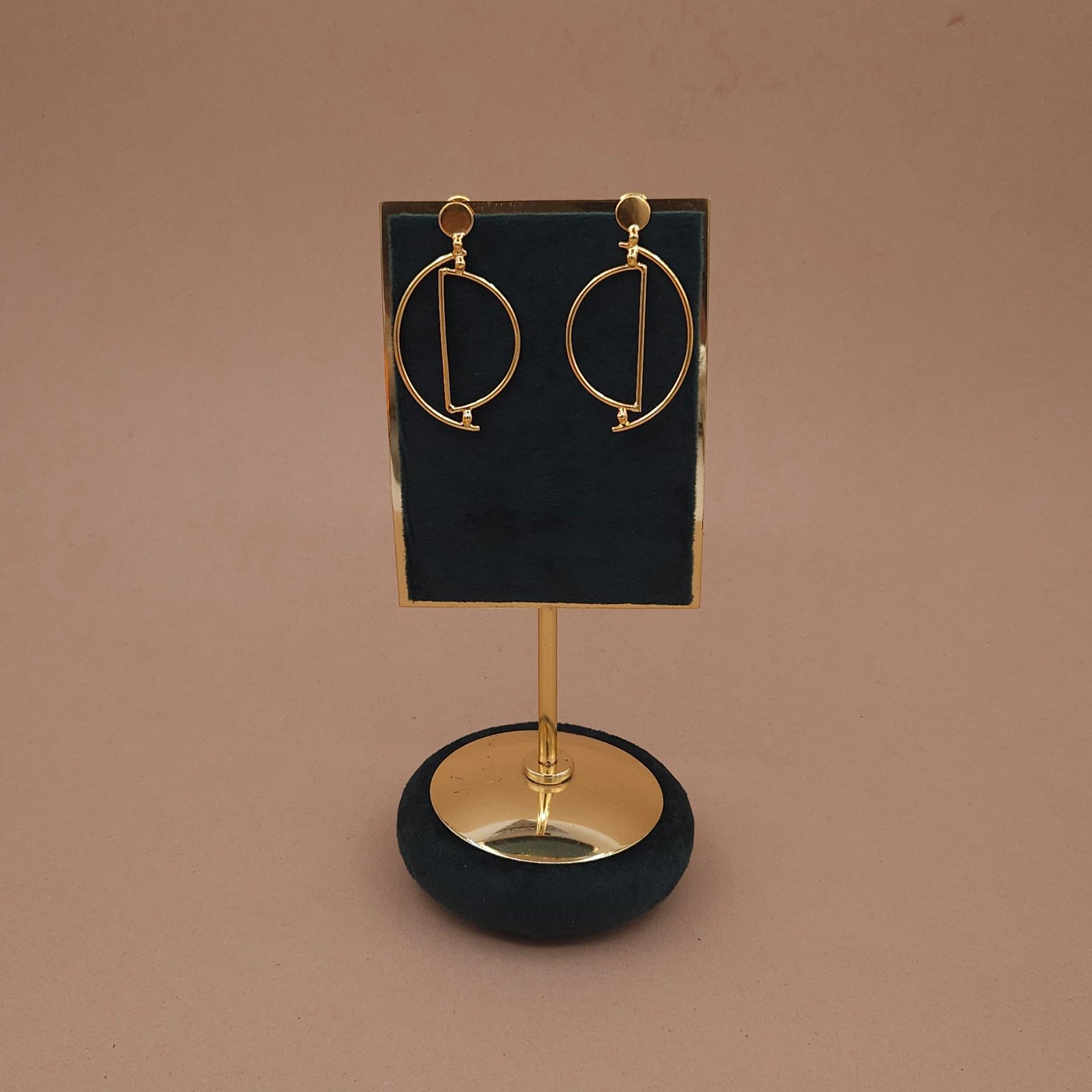 Handcrafted anti-tarnish gold geometric drop earrings with a minimalist oval and line design for a modern, chic statement.
