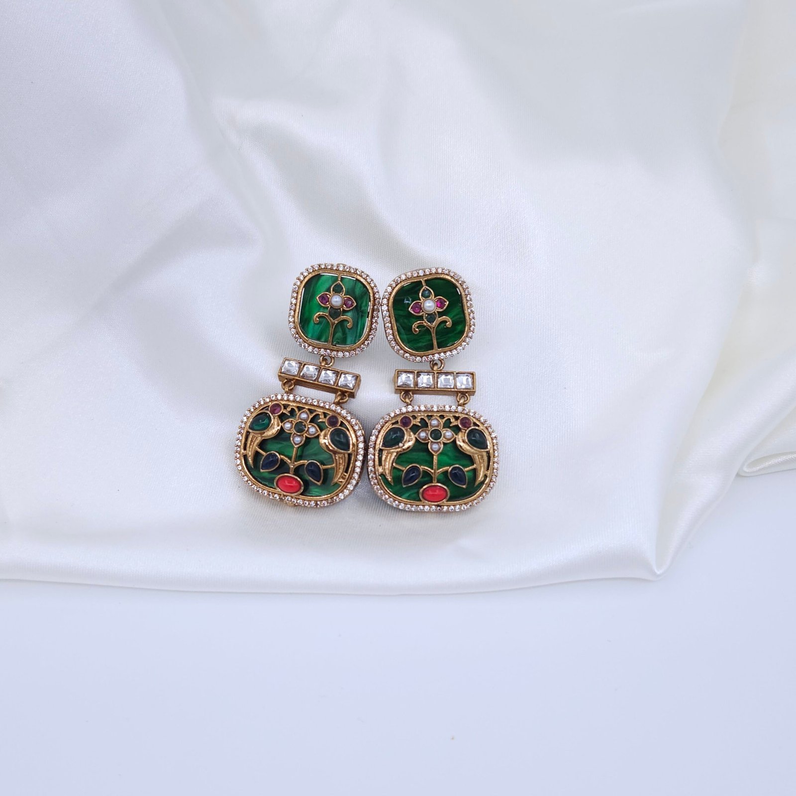 Green mother of pearl, American diamonds, multi-color Monalisa stones, natural gemstones, pearls