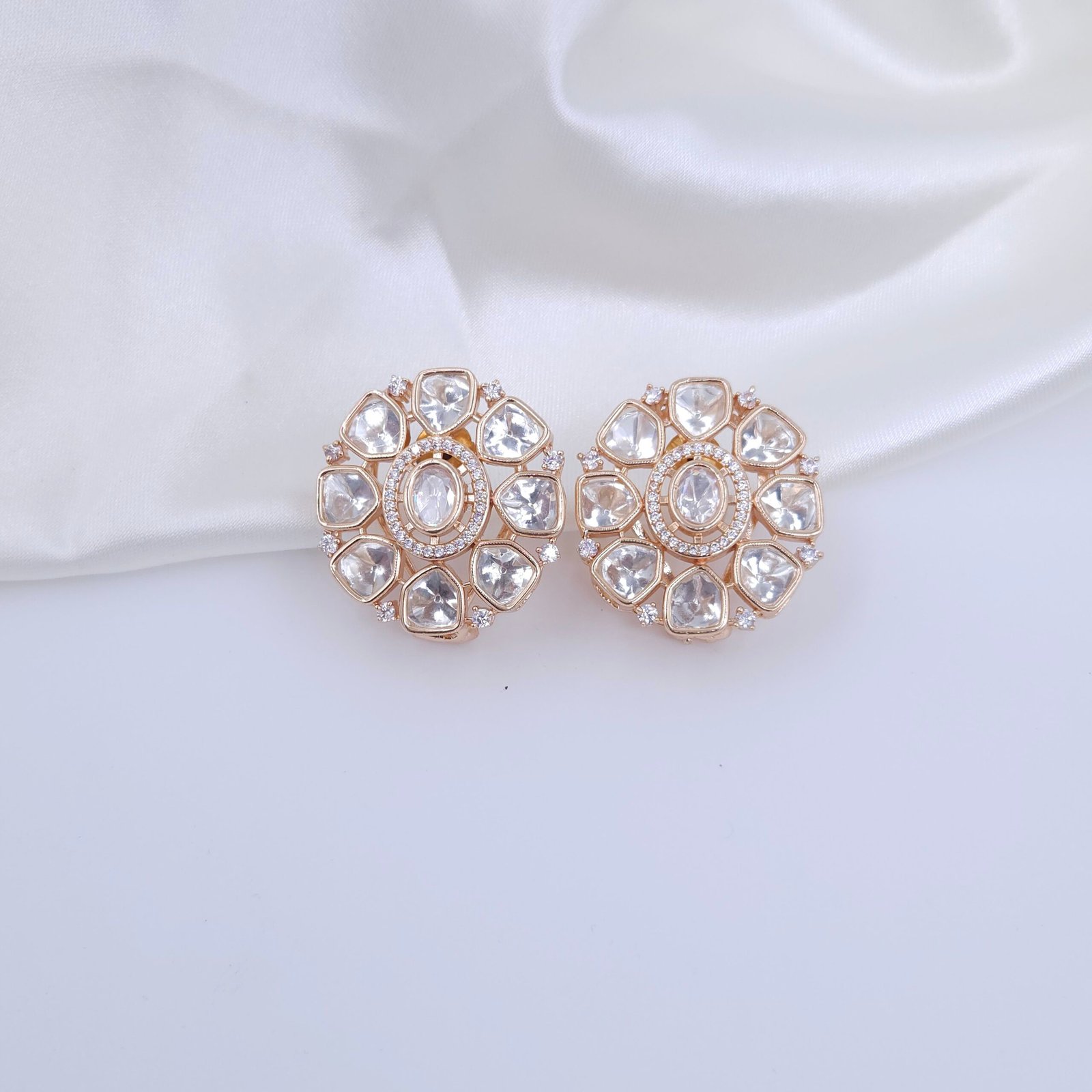 Handcrafted Moissanite & American Diamond Jewellery Set – Rose Gold Choker & Floral Stud Earrings