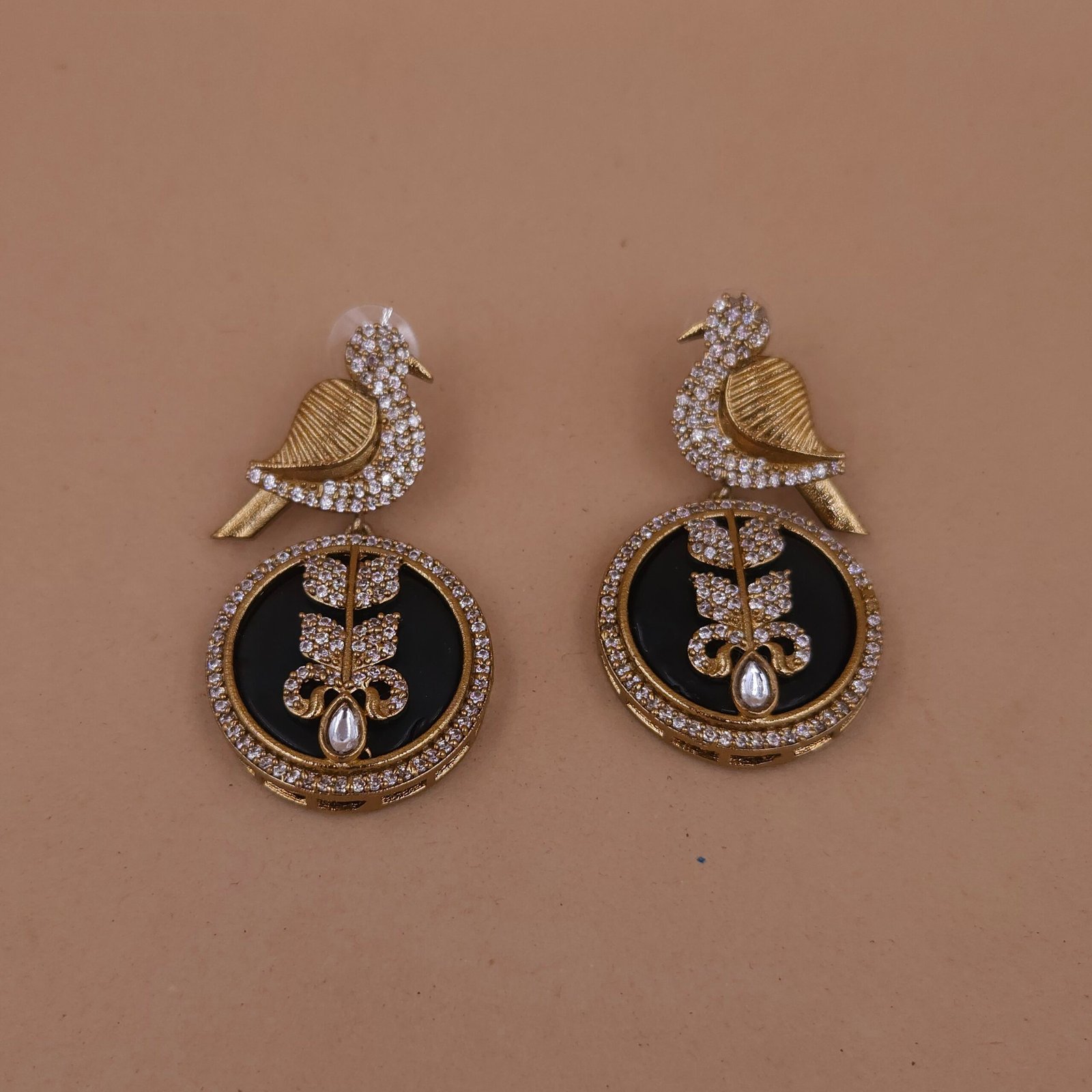 Handmade Brass Bird & Leaf Earrings with Monalisa Stone and CZ – Anti-Tarnish