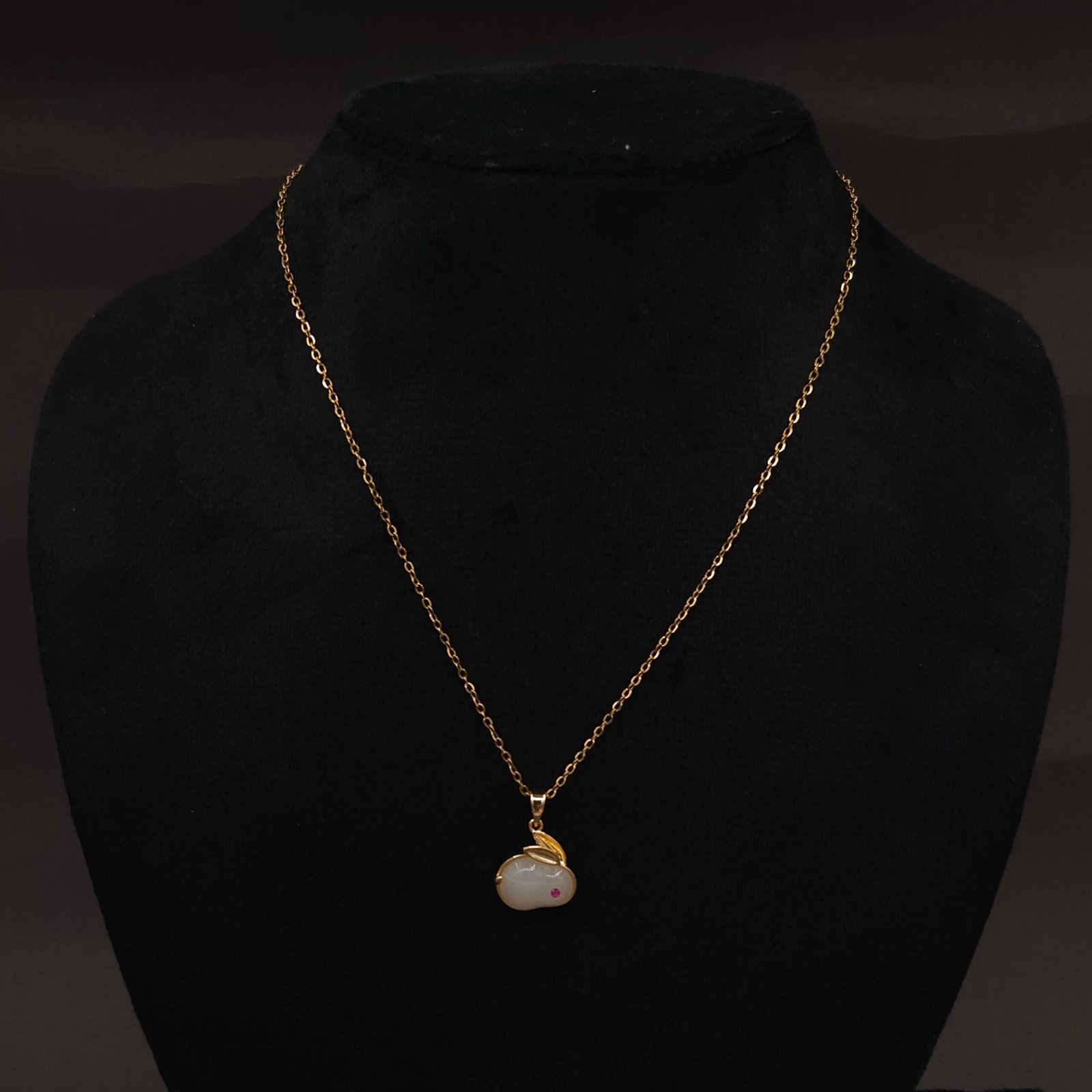 This charming bunny pendant necklace is crafted from hypoallergenic stainless steel with a premium anti-tarnish gold finish. The pendant features a smooth white stone body, accented with a delicate pink stone as the eye, for playful elegance. Lightweight and durable, it’s perfect as a daily accessory or thoughtful gift for animal lovers and trendsetters.