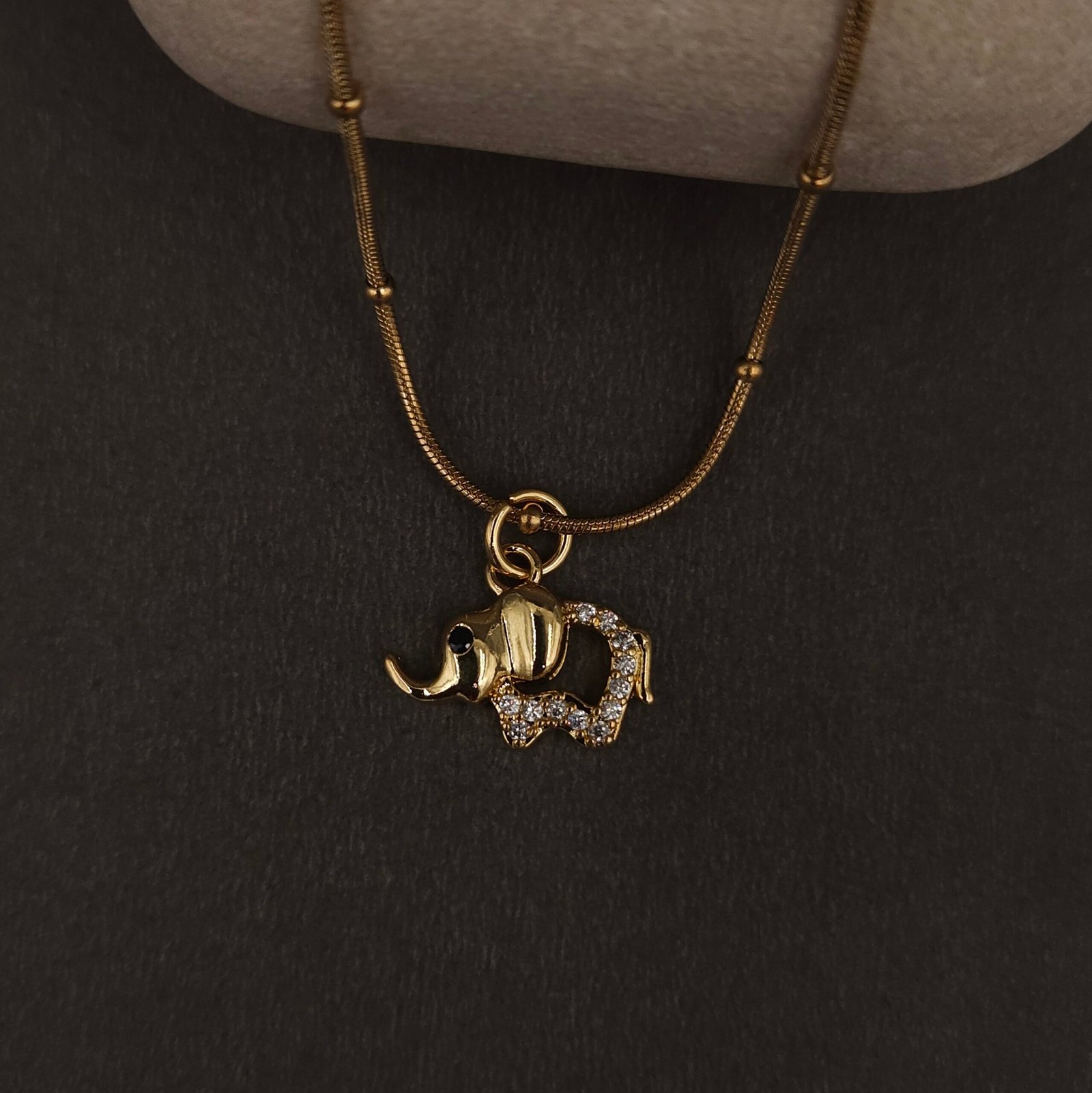 Cute stainless steel elephant pendant necklace with anti-tarnish gold finish and sparkling accent stones, ideal for everyday wear or gifting.