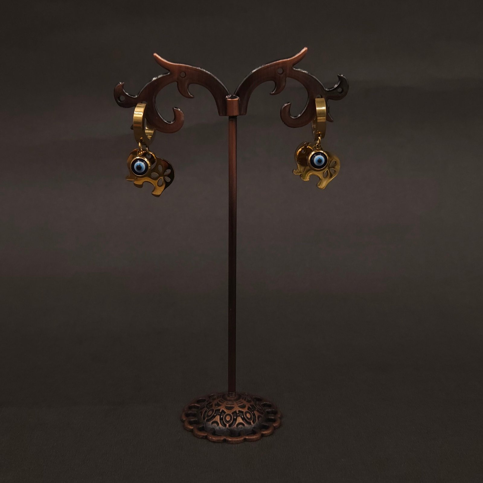Stainless Steel Elephant Evil Eye Hoop Earrings – Anti-Tarnish