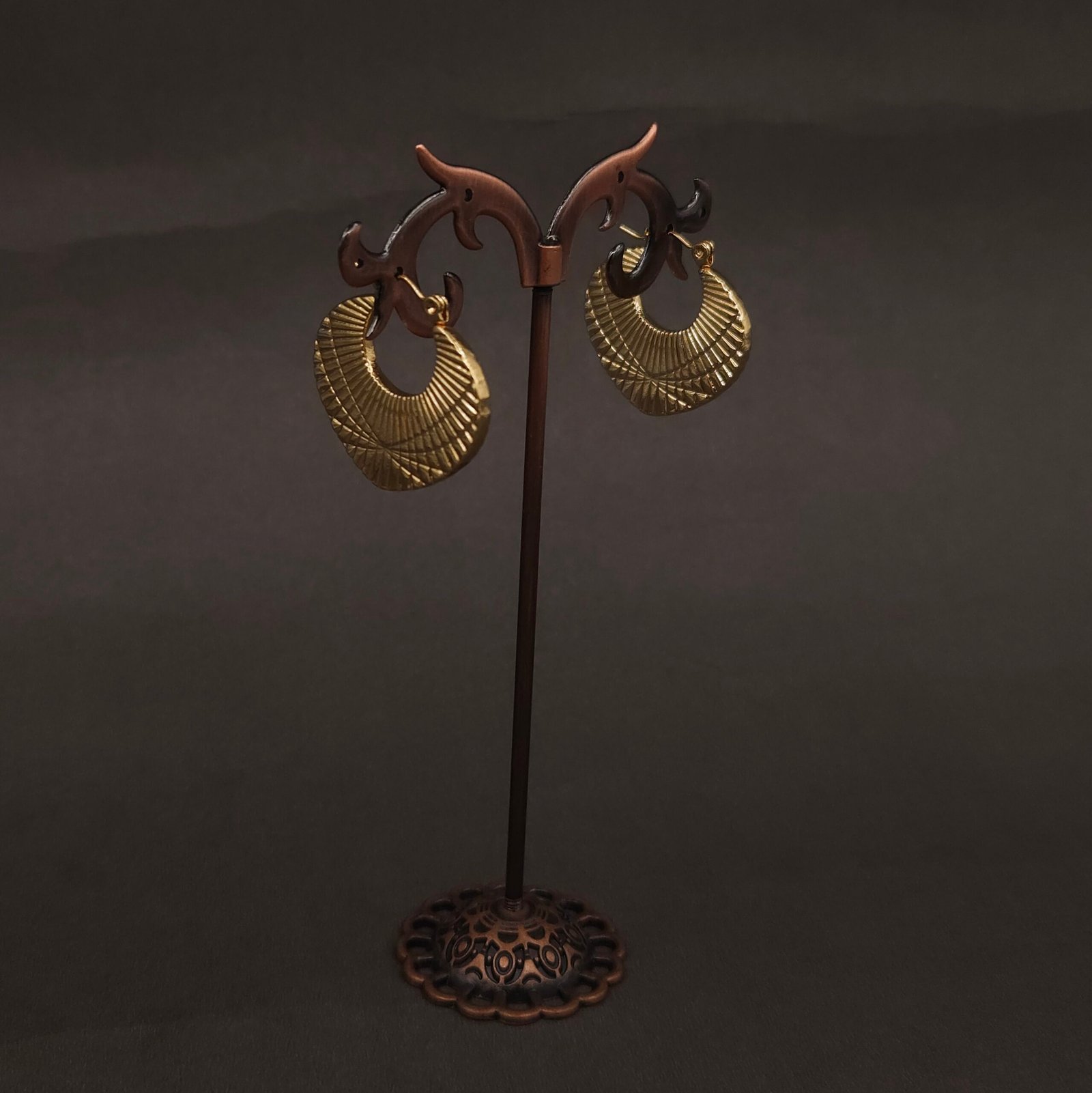 Stainless Steel Fan Engraved Hoop Earrings – Anti-Tarnish