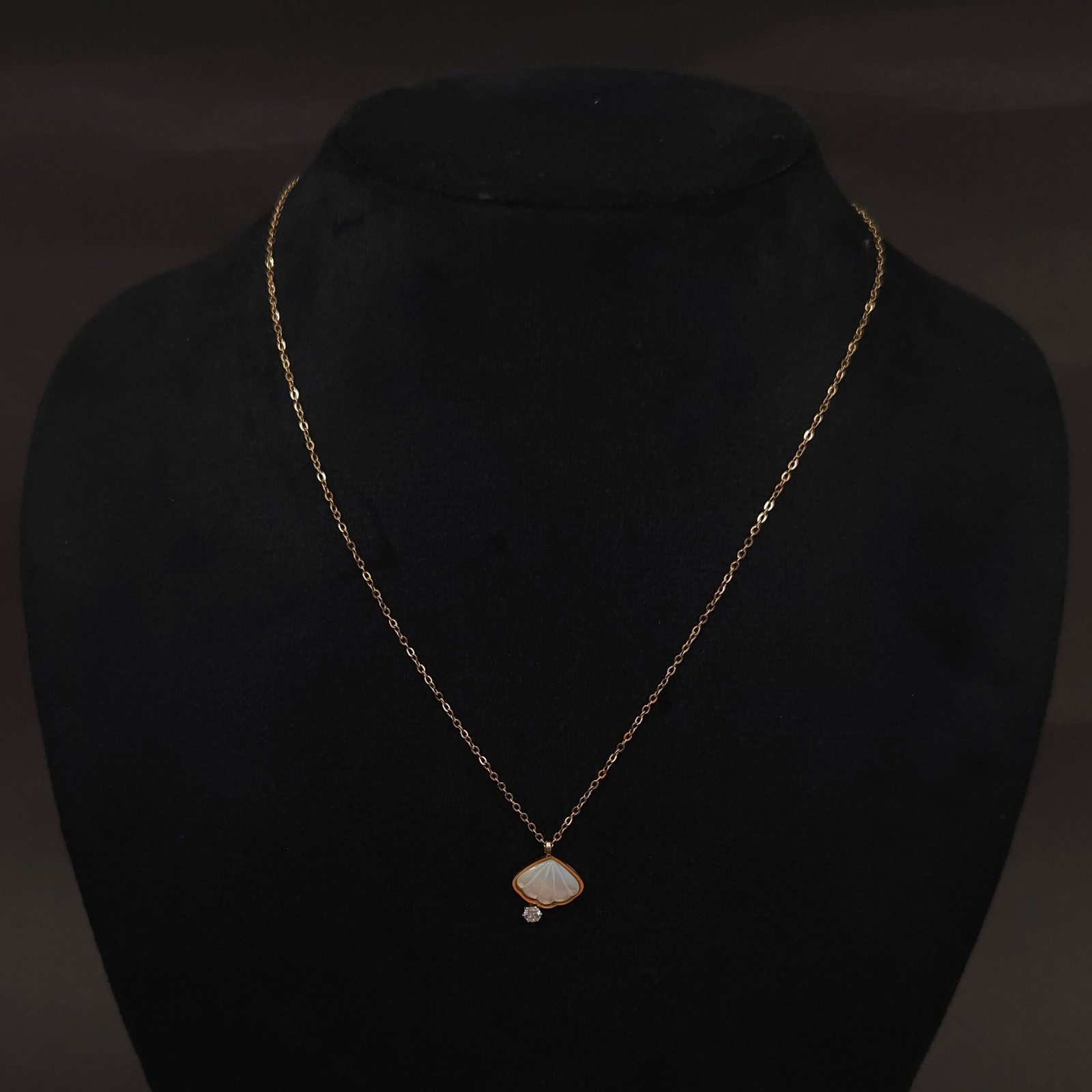 Stainless Steel Shell Motif Pendant Necklace – Anti-Tarnish, Mother of Pearl & CZ Accent