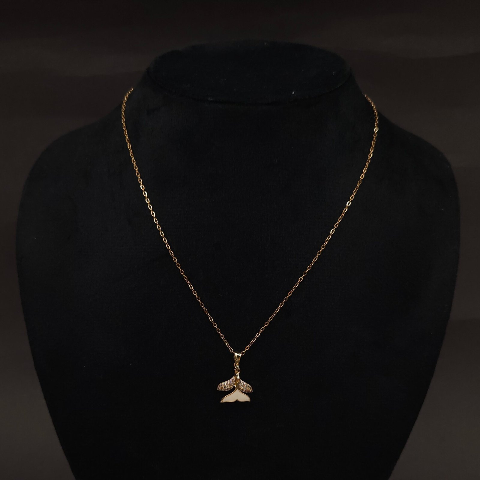 Elegant whale tail pendant necklace in anti-tarnish stainless steel, accented with glossy white enamel and CZ stones for a modern, ocean-inspired style.
